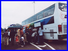 Beratur untuk menaiki bas ke Bangkok, Thailand
